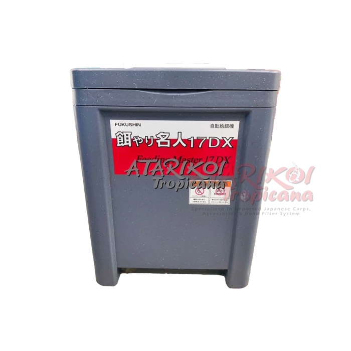 The Fukushin Feeding Master 17DX Series Solar/AC Powered Auto Feeder has many exciting features included dispensing up to 12 times a day, holds up to 6 kg of koi food, variable spread control.